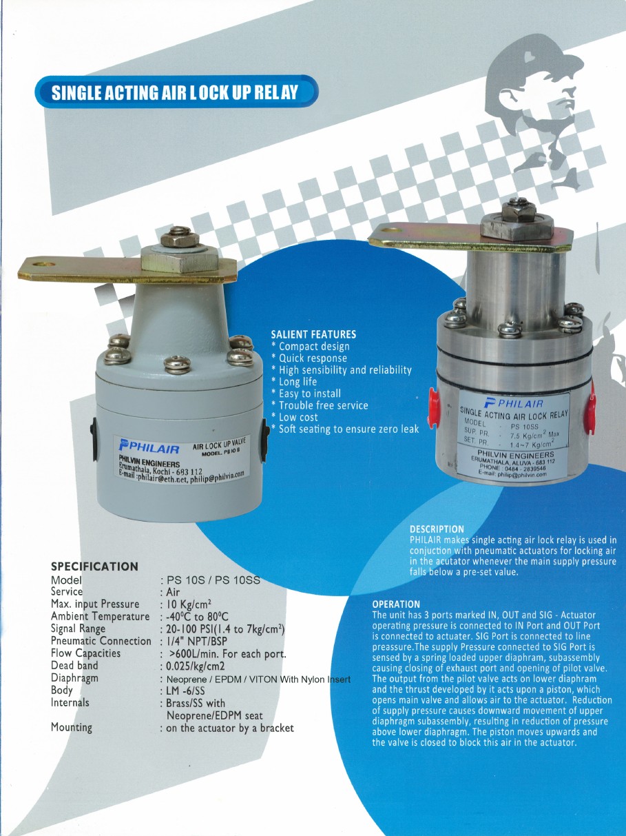 Philvin Engineers, pioneers in the manufacture and supply of various accessories like Air Filter Regulator, Air Lock Relays, Volume Booster etc. and Control Valve Internals viz. Plug, Stem, SeatRing, Cage Components etc. have a well established factory at Aluva near Cochin International Airport, Kerala State, India.